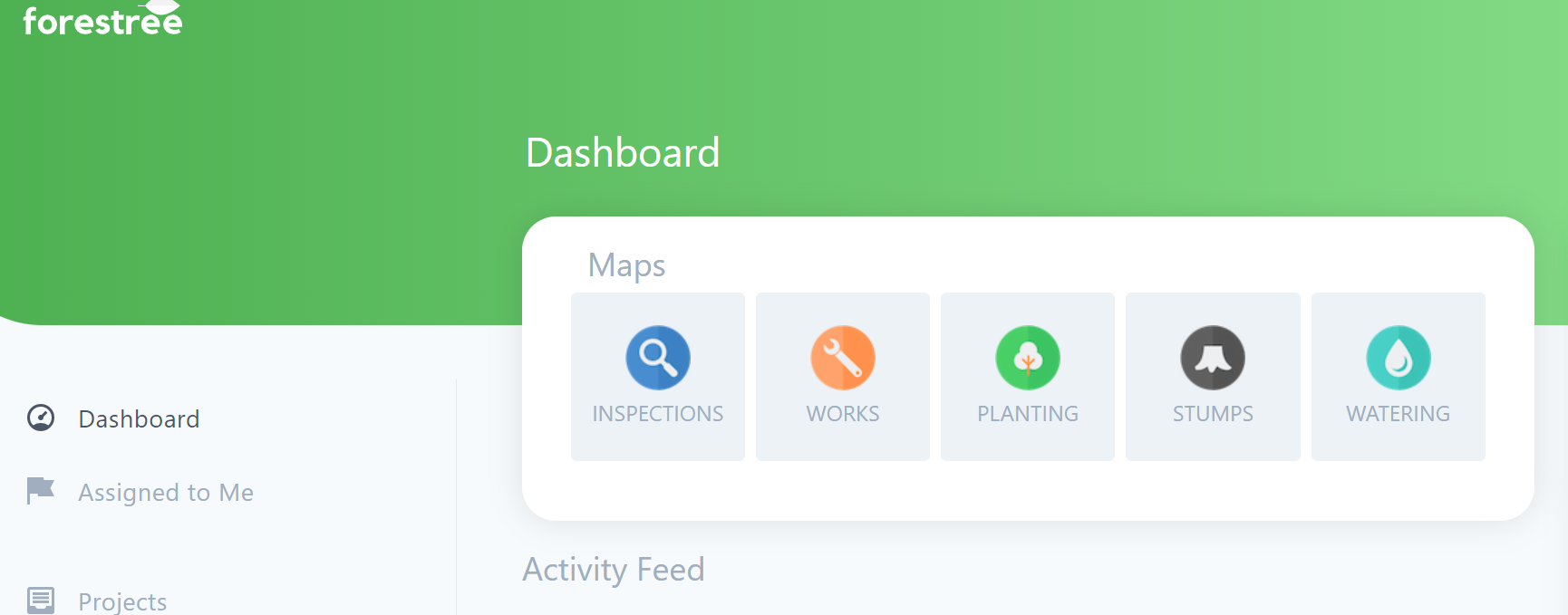 To view, assess or log planting, first go the Planting Map by selecting the tree icon on the Dashboard.