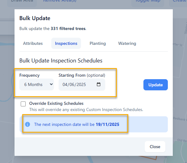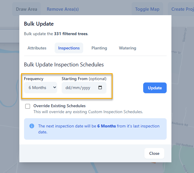 Then click the Inspections tab and choose a frequency on how often you would like to Inspect the filtered trees (e.g. 6 months):